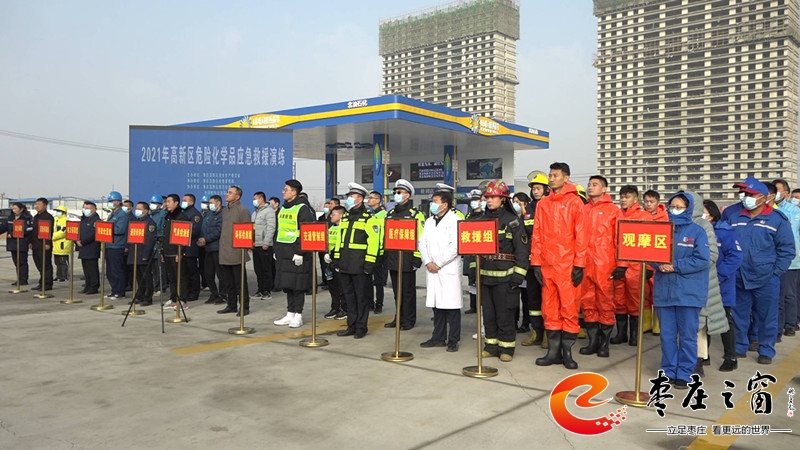 11月30日上午,棗莊高新區(qū)在張范街道北油石化加油站舉行2021年危險化學品應急救援演練。