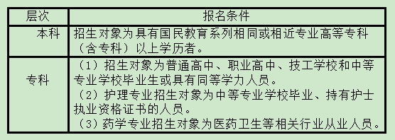 按照國家開放大學規(guī)定,2024年春季各專業(yè)報名學生年齡需年滿17周歲(2007年3月31日(含)前出生),并按所報考層次分別滿足下列條件: